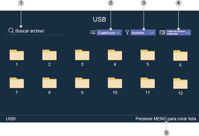 - Cree una lista de reproducción de fotos, música o vídeo.