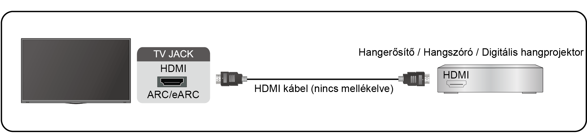 Ha Audio Return Channel (ARC) funkció vagy a továbbfejlesztett Audio Return Channel (eARC) használatával szeretné a hangot a TV-ből HDMI kábellel digitális hangrendszerbe továbbítani, csatlakoztassa azt a TV HDMI (ARC/eARC) portjába.
